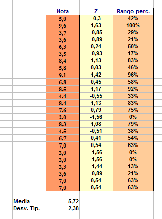 Cada docente tiene su forma de evaluar y su nivel de exigencia. Por ello, una misma calificación en una evaluación puede tener significados muy distintos según el grupo al que se pertenezca. Para situar una medida dentro de su grupo se han ideado varios procedimientos, entre ellos las medidas típicas Z y el rango percentil (o percentil inverso).