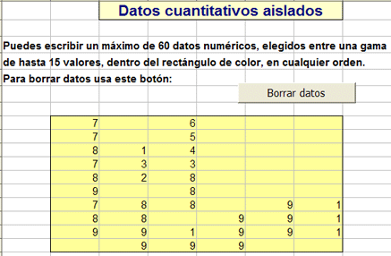 Abre el modelo cuantita.ods, que es un ejemplo sencillo del uso de técnicas informáticas en los cálculos estadísticos. Si te pide Habilitar macros, responde afirmativamente.