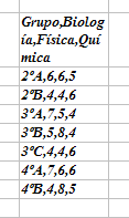 Estas líneas que siguen constituyen una pequeña tabla de datos, en la que se han usado comas como separadores:
