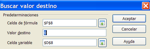 a) Celda de la fórmula: Es una celda que contiene una fórmula cuyo valor al evaluarla queremos fijar. En este modelo se trataría de la celda F8, que, como verás, contiene la ecuación.