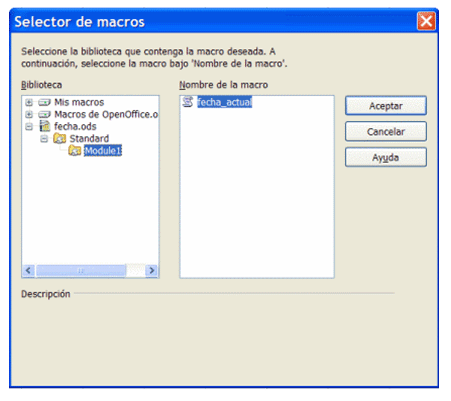 Busca la macro fecha_actual, selecciónala y pulsa Aceptar.