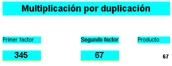 Los números no han de ser necesariamente 345 y 67, como ya habrás comprendido, pero te será útil mantenerlos para comprobar tus operaciones.