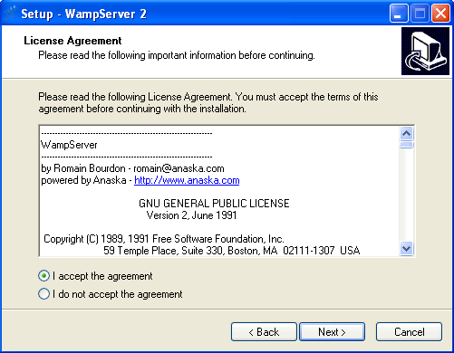 1 Aceptamos la bienvenida al programa de instalación de WampServer.