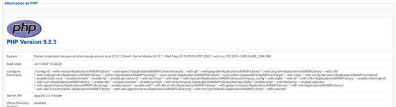 - Información de PHP. Para conocer la versión de PHP activa en nuestro servidor.