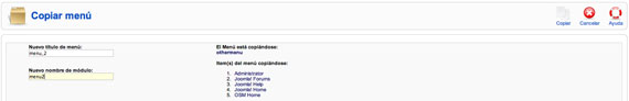 Y donde también se encuentra la información sobre el menú desde el que se copia y los artículos del menú que se copiarán.