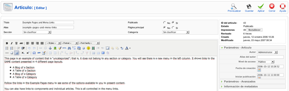 Archivar una artículo de contenido supone decidir que sigue activo, pero no se encuentra clasificado dentro de la sección/categoría original. De hecho, supone crear una estructura paralela de secciones y categorías, identificadas de igual forma, e incluso, permite realizar vínculos en los menús a estas secciones, categorías o artículos "archivados".