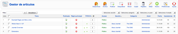 Una vez que accedemos al área de trabajo, observamos la relación de todos los artículos de contenido que existen.