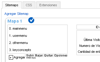 Observamos que el mapa del sitio asociado al ID = 1 mostrará los cuatro menús seleccionados.
