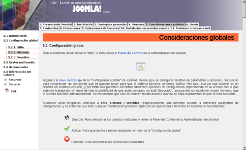 Para poder entender que Joomla! es una herramienta sencilla y versátil para ser utilizada en entornos educativos, en los contenidos se van insertando referencias a: