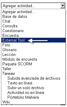 En las actividades aparece una nueva función llamada External Tool que permite añadir a nuestro curso actividades ya preparadas que se encuentran en otra web o página externa.