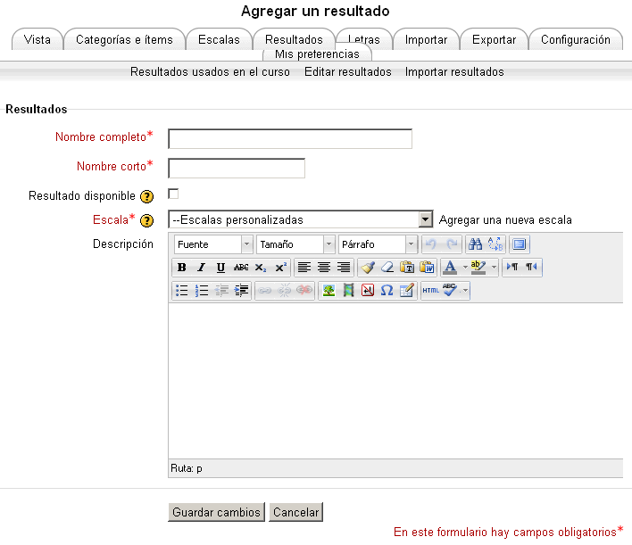En la ventana de creación del nuevo resultado podemos elegir una escala o bien crear una nueva.
