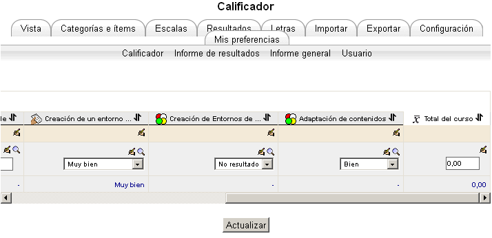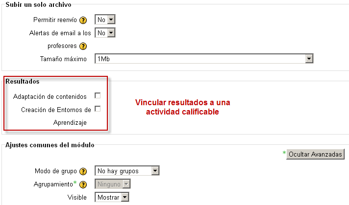 Y vincular los resultados personalizados que hemos creado manualmente a una actividad calificable.