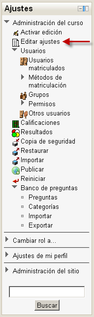 El formato se define en la sección de Administración del curso - Editar ajustes, al que se accede desde el bloque Ajustes de la página principal del curso: