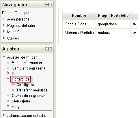 En las versiones anteriores de Moodle los alumnos no tenían espacio para almacenar información. A partir de la versión 2.0 se han incluido varios plugins que permiten conectar con sitios externos con el propósito de guardar información. Se les denomina Portfolios o Portafolios.