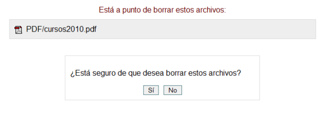 Es la opción más sencilla: marcas el archivo o el directorio a borrar y eliges Borrado. Como no se puede deshacer la acción, el sistema te pide que confirmes tu decisión: