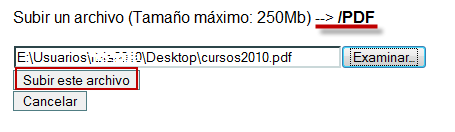 Una vez que hayamos elegido el archivo que queremos incorporar a la plataforma, hacemos clic en Subir este archivo.