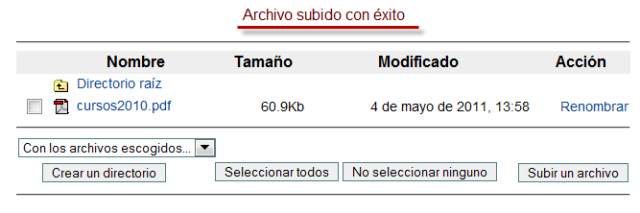 Una vez que lo hemos subido, el sistema nos indica que el proceso se ha realizado de modo correcto: