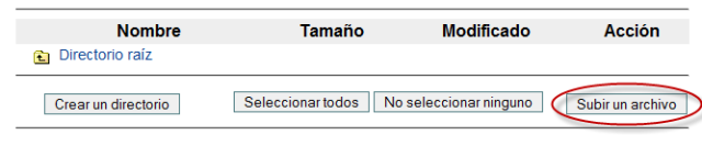 Sube un archivo en cada uno de los directorios que has creado. Si puedes, sube archivos que vayas a utilizar más tarde en tu espacio educativo.