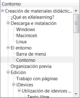 En el apartado Contorno se crea la estructura de navegación del contenido, mostrando las páginas y subpáginas que lo componen (nodos).