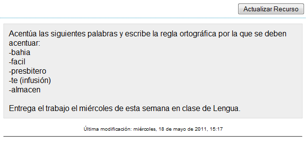 Hemos elaborado una página de texto plano con un ejercicio sobre ortografía y el aviso de cuándo y dónde se debe entregar hecho: