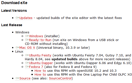 - Desde la página de la forja del CNATIC (Centro Nacional de Referencia de Aplicación de las TIC, basadas en fuentes abiertas), donde se están desarrollando nuevas versiones de eXeLearning con nuevas funcionalidades: