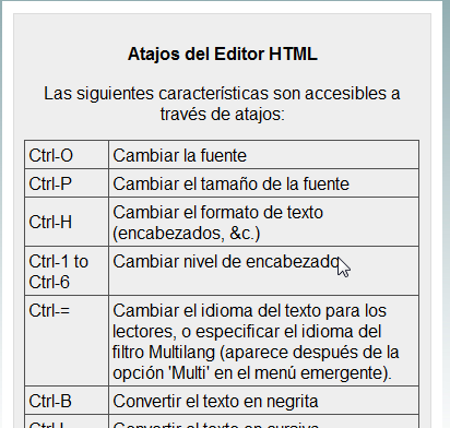Es una ayuda sobre los "atajos" que puedes utilizar con el editor HTML.