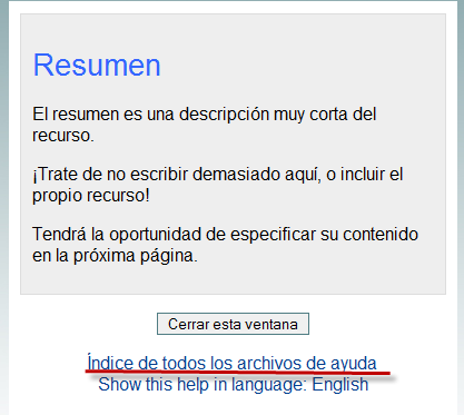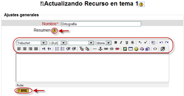 En la imagen superior se está editando un Resumen, para explicar al alumno el contenido del archivo que hemos enlazado, Ortografía.