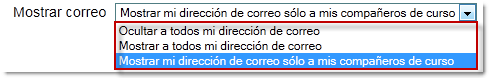 Podemos elegir entre mostrar u ocultar el correo a todos o bien mostrar el correo sólo a los compañeros del curso.