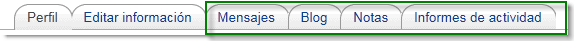 Las opciones que encontramos aquí son: Mensajes, Blog, notas e informes de actividad.