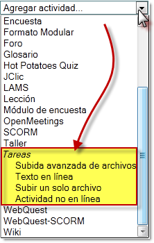 Dentro del módulo Tarea de Moodle existe la opción que permite a los usuarios subir archivos en distintos formatos y a los docentes calificarlos online.