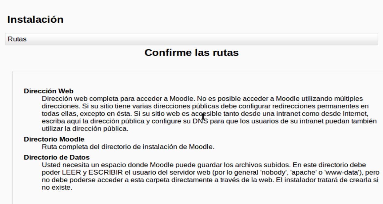 - luego revisar y confirmar los datos de la configuracion de nuestra Moodle: