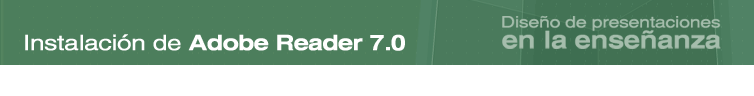 Si no tenemos instalado ninguno vamos a instalar Adobe Reader 7.0 siguiendo estas instrucciones. Lo primero que debemos hacer es hacer clic sobre el siguiente enlace y descargar Adobe Acrobat desde el CD del curso a cualquier carpeta de nuestro ordenador. |
