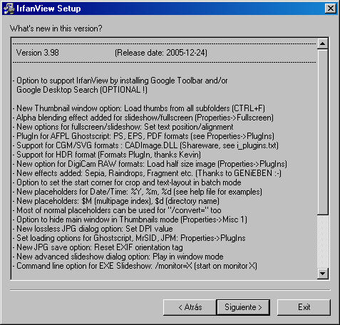 Desactivamos la segunda casilla y las demás las dejamos tal como aparecen por omisión. Hacemos clic en el botón Siguiente y nos mostrará un cuadro de diálogo con las novedades de esta versión.