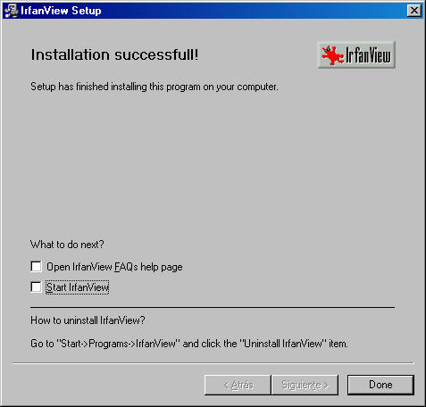Desactivamos ambas casillas y hacemos clic en el botón Done. Ya está realizada la instalación y en el Escritorio nos encontramos el icono de acceso directo.