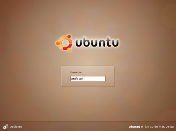 Una vez finalizado el proceso de carga del sistema operativo, se nos mostrará la pantalla de la siguiente figura, en la cual podremos autentificarnos ante el sistema. En nuestro caso introduciremos el nombre de la cuenta "profesor" creada en la etapa 5 del proceso de instalación.