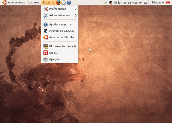 La última de las opciones del menú principal es Sistema, desde la cual podremos modificar nuestras preferencias, administrar el sistema, obtener ayuda, bloquear la pantalla, salir de sesión o bien apagar el equipo.