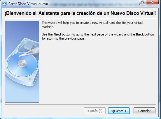 A continuación aparecerá el asistente de creación de un nuevo disco duro virtual. Pulsaremos el botón Siguiente.