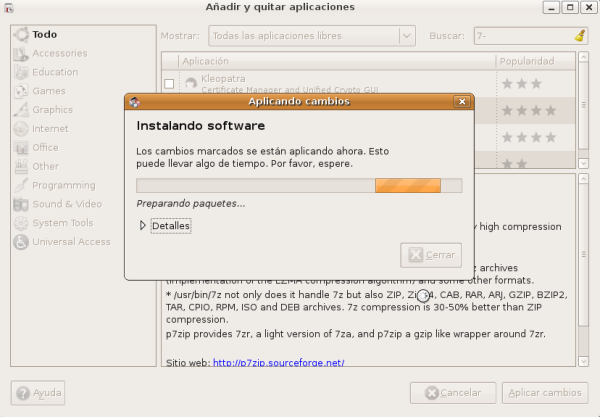 7-zip es un conjunto de utilidades de compresión que permiten comprimir (y descomprimir) archivos con elevados ratios de compresión. Para instalarla abrimos el instalador de aplicaciones.