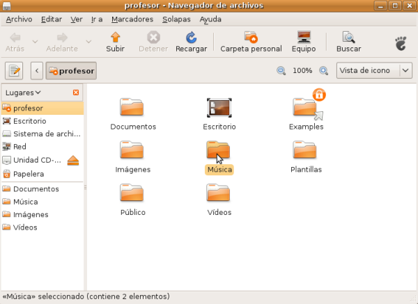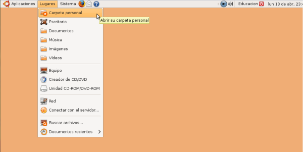 Abrimos la carpeta personal seleccionando Lugares->Carpeta personal.