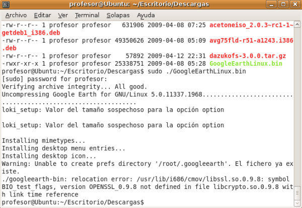 Llegados a este punto daremos por concluida la instalación de Google Earth en Ubuntu.