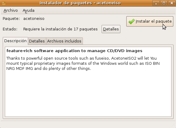 En la ventana que se nos muestra a continuación pulsaremos sobre el botón Instalar el paquete.