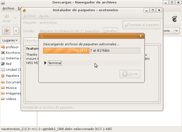 Continúa el proceso con la descarga de los paquetes adicionales que necesita la aplicación AcetoneISO para poder instalarse correctamente.