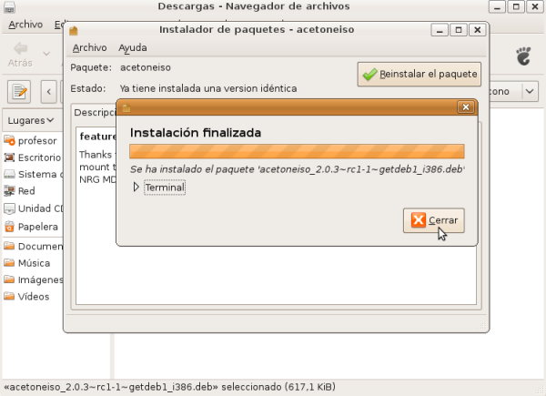 Llegados a este punto daremos por concluida la instalación de AcetoneISO en Ubuntu.