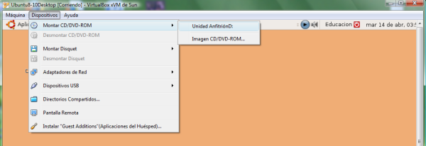 Una vez terminado el proceso de instalación vamos a comprobar el funcionamiento de AcetoneISO creando una imagen de un CD. Introduzca en la unidad de CD/DVD un CD o DVD (en nuestro caso hemos introducido el CD de instalación de Windows Vista SP1. Si está siguiendo la documentación utilizando Virtual Box seleccione en el menú de la máquina virtual Dispositivos->Montar CD/DVD ROM->Unidad Anfitrión. La unidad del anfitrión a montar podrá ser D:, E: o cualquiera otra dependiendo de la configuración de la máquina en la que esté realizando el material.