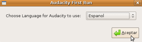 Al ser la primera vez que ejecutamos la aplicación, se nos preguntará por el lenguaje en el que queramos que se presenten los diferentes menús y mensajes de la misma. Seleccionamos Español y pulsamos Aceptar.