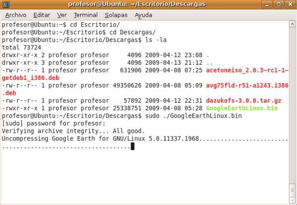 sudo   ./GoogleEarthLinux.bin
