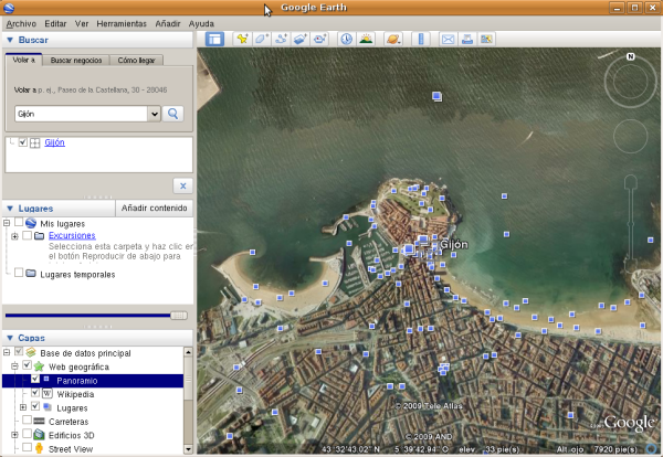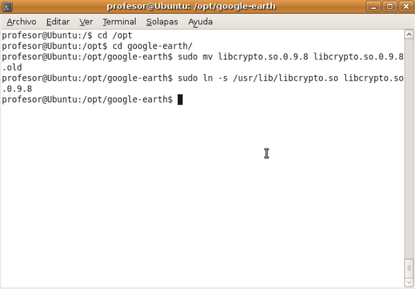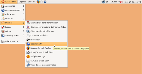 Una vez hecho esto lance de nuevo Google Earth desde Aplicaciones->Internet->Google Earth.