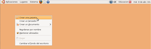 Haremos clic con el botón derecho del ratón sobre el escritorio y en el menú emergente seleccionaremos Crear una carpeta. Daremos nombre a la nueva carpeta como Descargas.