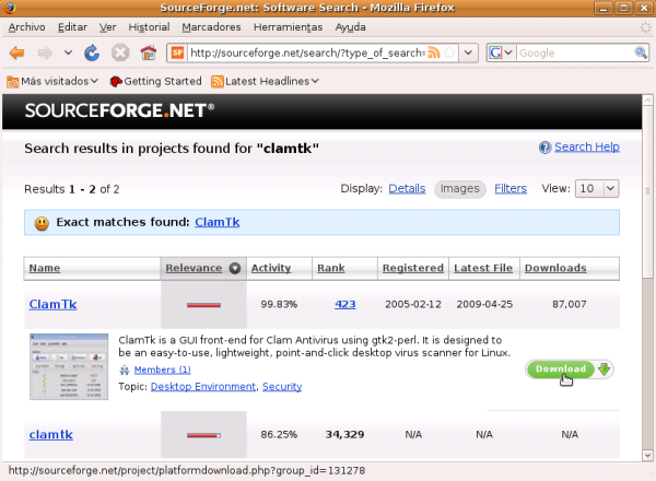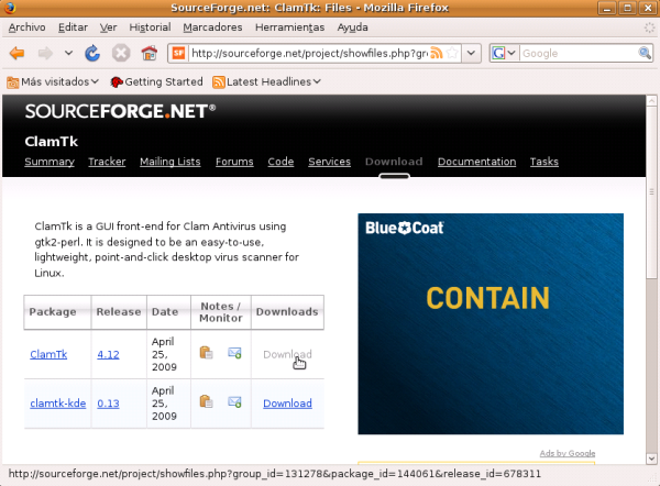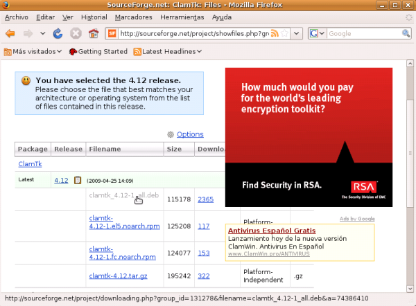 En la siguiente ventana pulsamos sobre el enlace Clamtk, ya que el segundo corresponde a la versión del mismo programa para el entorno gráfico KDE y nosotros vamos a instalar la visión para Gnome.
