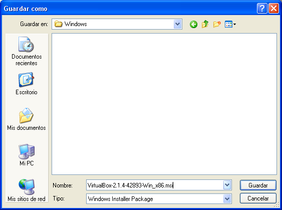 Como resultado de la acción anterior, pasa a ser mostrada la siguiente ventana, en la que pulsaremos directamente sobre el botón "Guardar" para salvar al disco duro de nuestro equipo la aplicación "VirtualBox".